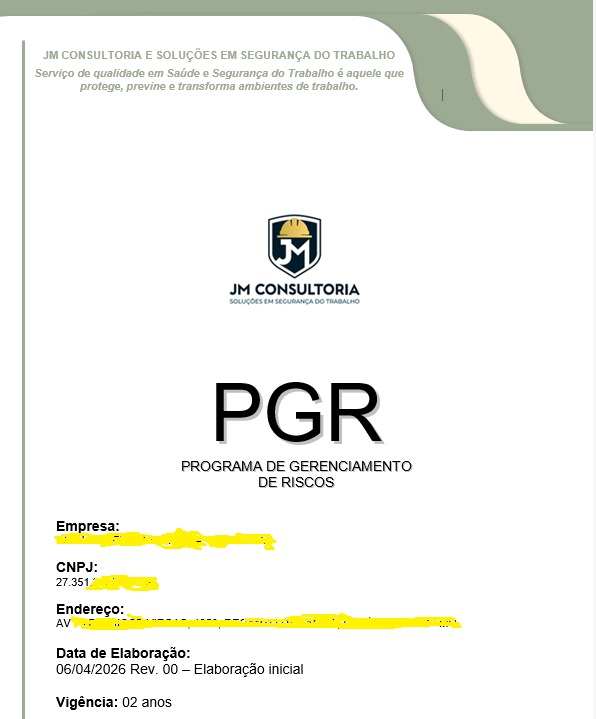 Neste mês de abril, a JM Consultoria concluiu e entregou mais um Programa de Gerenciamento de Riscos (PGR), documento base