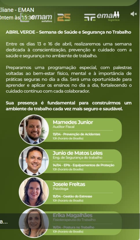 Engenheiro Junio de Matos ministra palestra sobre EPI e EPR na Semana Abril Verde da Eman Asfaltos